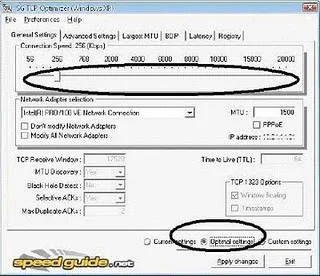 Pilih kecepatan koneksi (misal 256K) Kemudian pilih optimal setting, lalu “apply changes”